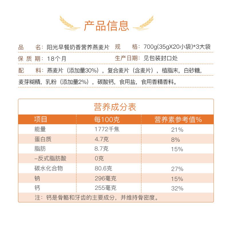 西麥 燕麥片 營養(yǎng)早餐食品 即食 陽光早餐奶香營養(yǎng) 谷物代餐麥片700g(35g-20小袋)獨(dú)立包裝
