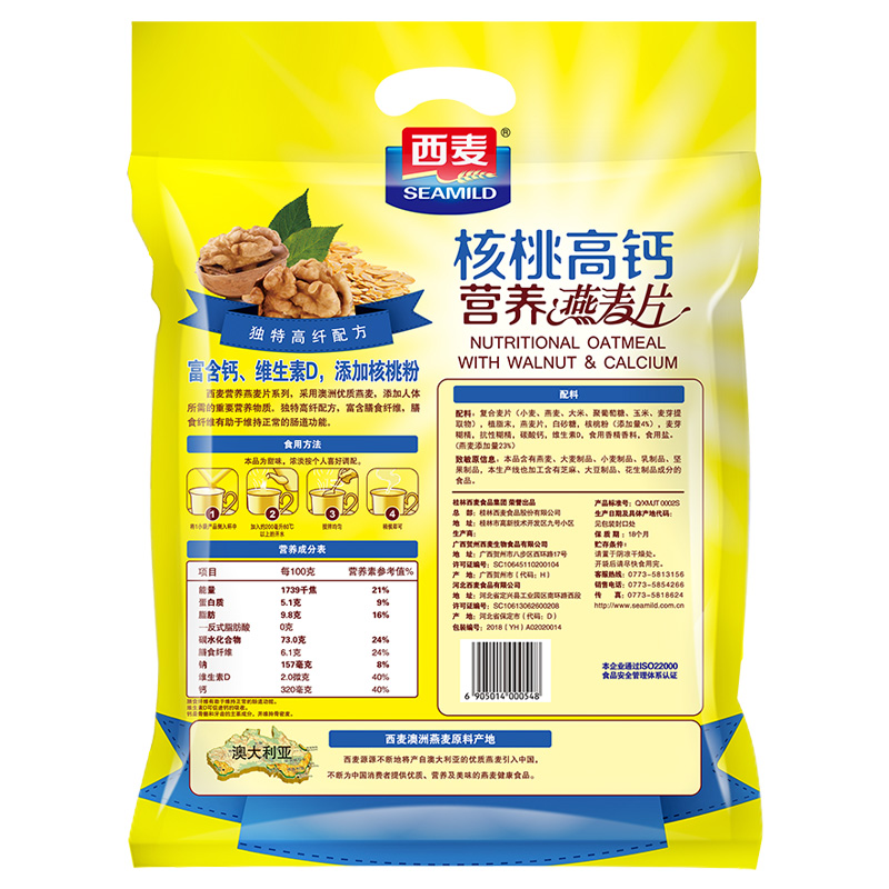 西麥 燕麥片 營養(yǎng)早餐食品 牛奶好搭檔 核桃高鈣營養(yǎng) 谷物代餐麥片700g(35g-20小袋)獨立包裝