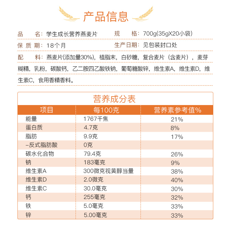 西麥 青少年學(xué)生成長早餐營養(yǎng) 即食 沖飲谷物高鈣燕麥片700g