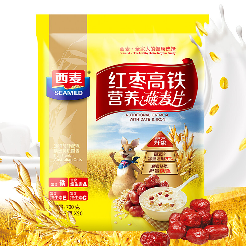 西麥 燕麥片 西澳陽光 營養(yǎng)早餐食品 紅棗牛奶營養(yǎng)好搭檔 谷物代餐麥片560g(28g-20小袋)獨(dú)立包裝