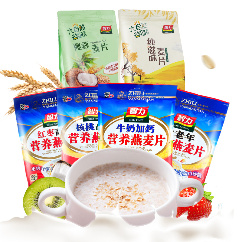 智力燕麥片 牛奶加鈣即食麥片700g 早餐免煮應用小袋裝 純滋味525g