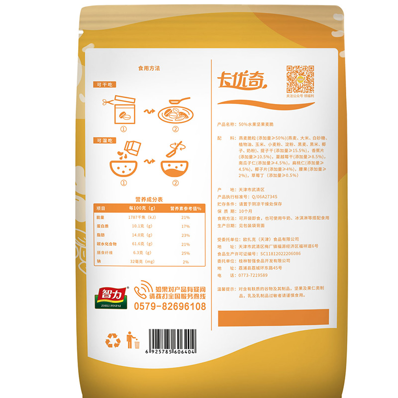 智力卡優(yōu)奇水果堅果麥脆300g免煮學(xué)生營養(yǎng)早餐即食干吃燕麥代餐