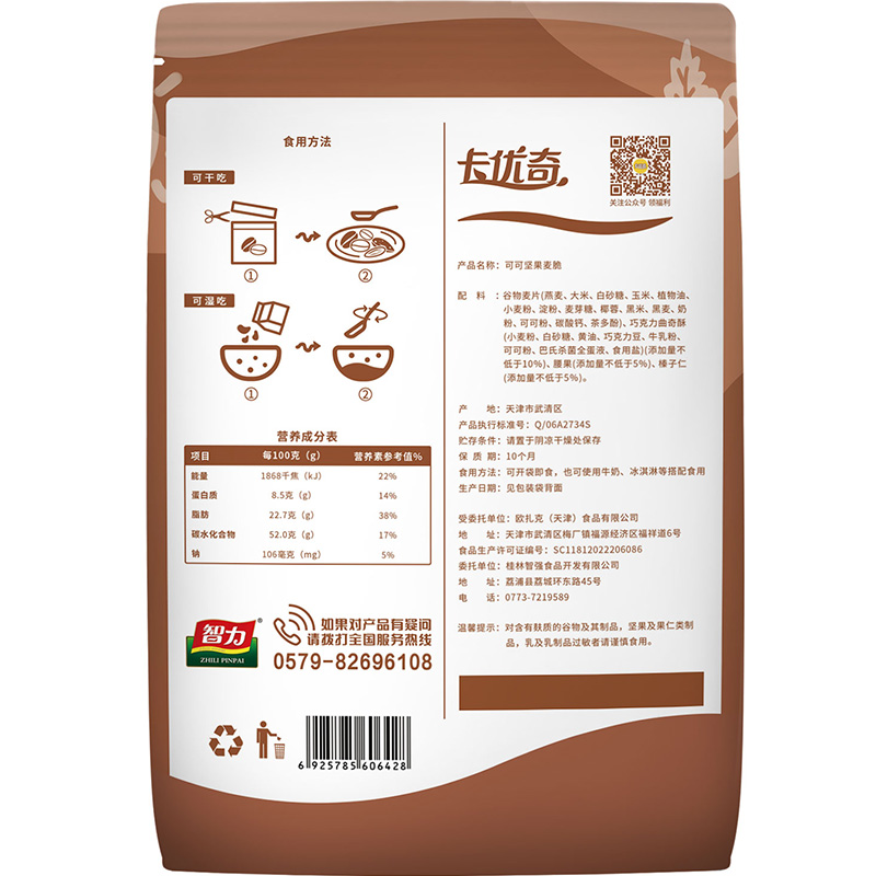 智力卡優(yōu)奇可可堅果麥脆300g免煮學(xué)生營養(yǎng)早餐即食干吃燕麥代餐