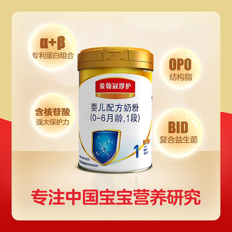伊利奶粉 金領冠珍護系列 嬰兒配方奶粉 1段 800g(0-6月嬰兒配方奶粉)