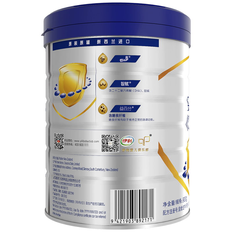 伊利奶粉 金領冠睿護系列 新西蘭原裝原罐進口 含乳鐵蛋白 1段900克(0-6個月適用)