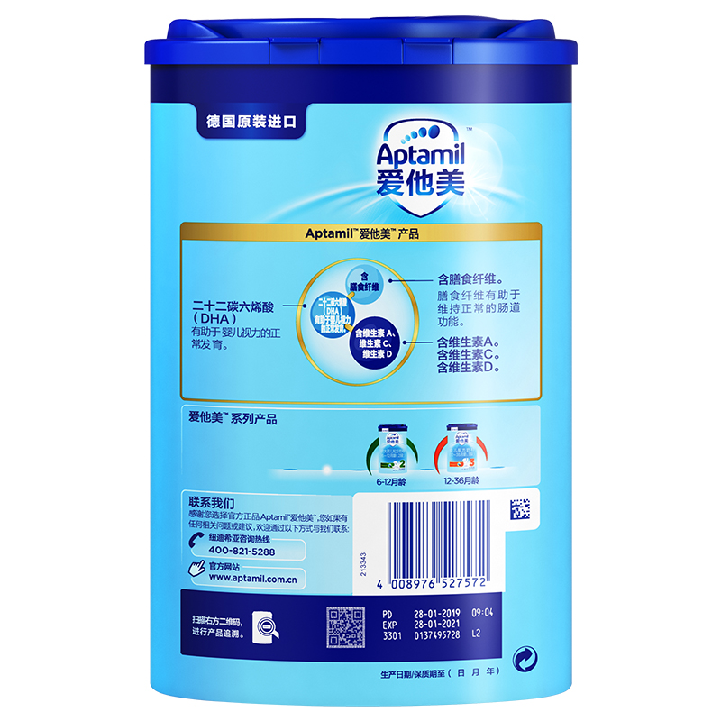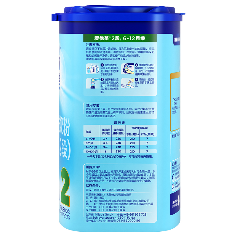 愛(ài)他美(Aptamil) 較大嬰兒配方奶粉(6–12月齡,2段) 800g
