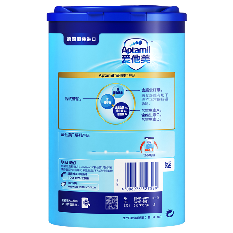 愛他美(Aptamil) 幼兒配方奶粉(12–36月齡,3段)800g
