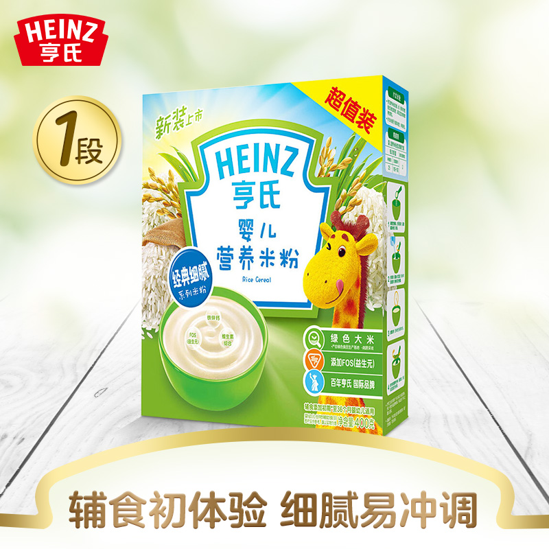 亨氏 (Heinz) 1段 嬰幼兒輔食 含益生元 寶寶米粉米糊 400g (輔食添加初期-36個(gè)月適用)
