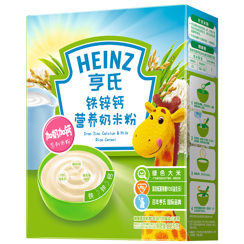 亨氏 (Heinz) 1段 嬰幼兒輔食 強(qiáng)化鐵鋅鈣 寶寶米粉米糊 225g (輔食添加初期-36個月適用)