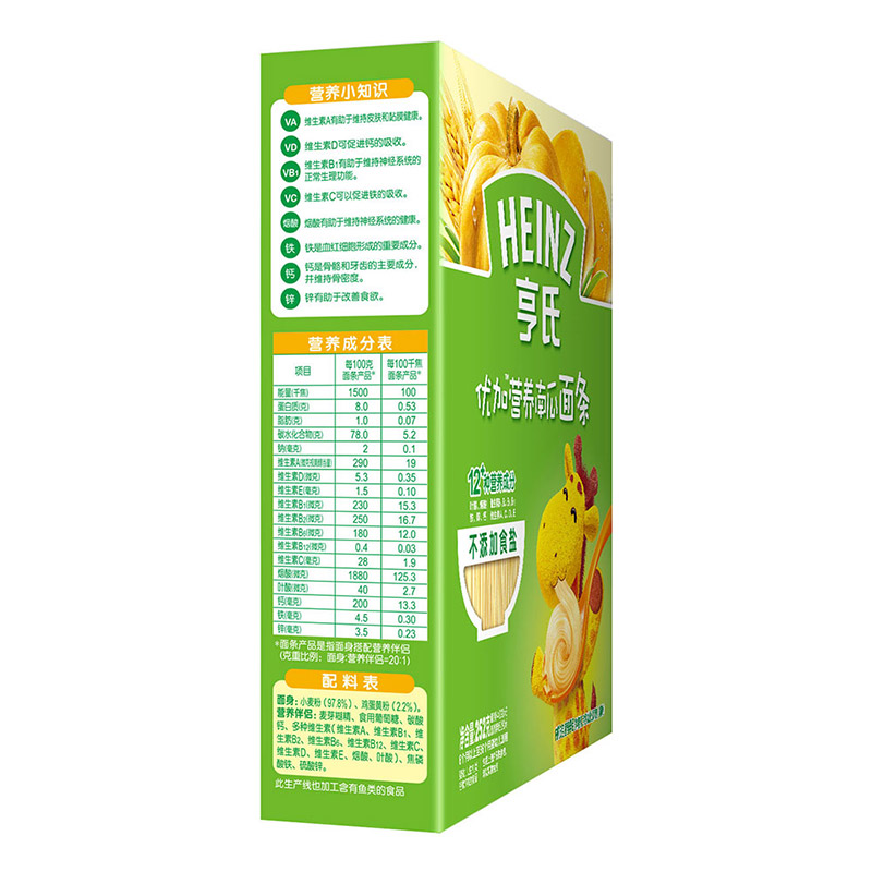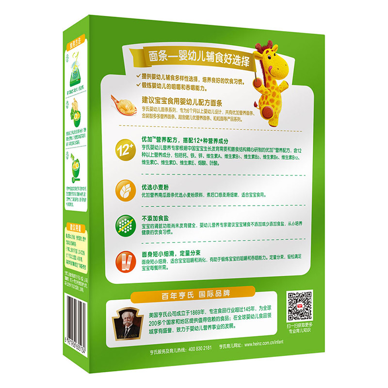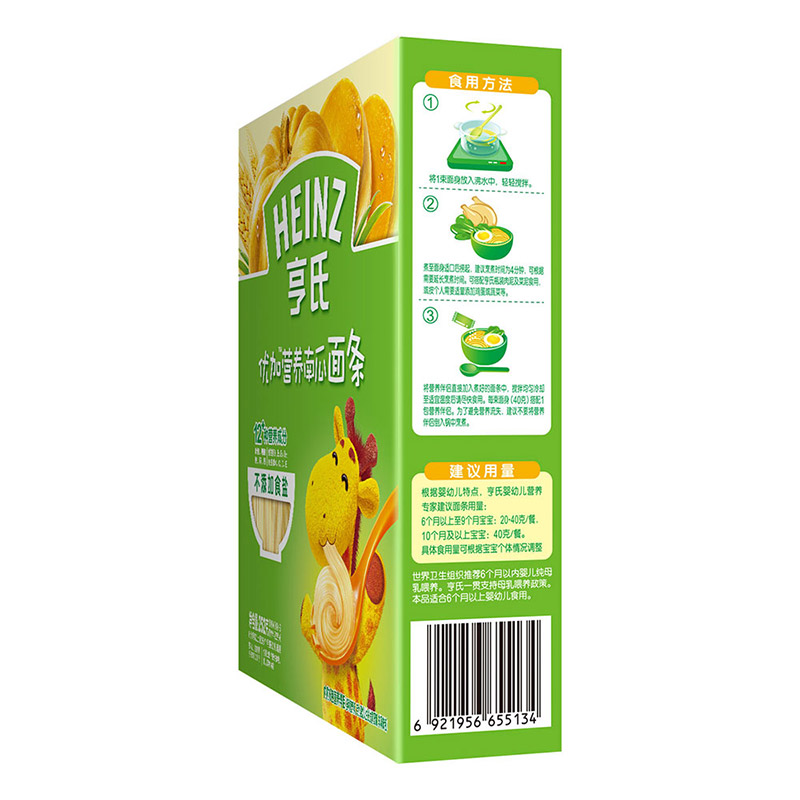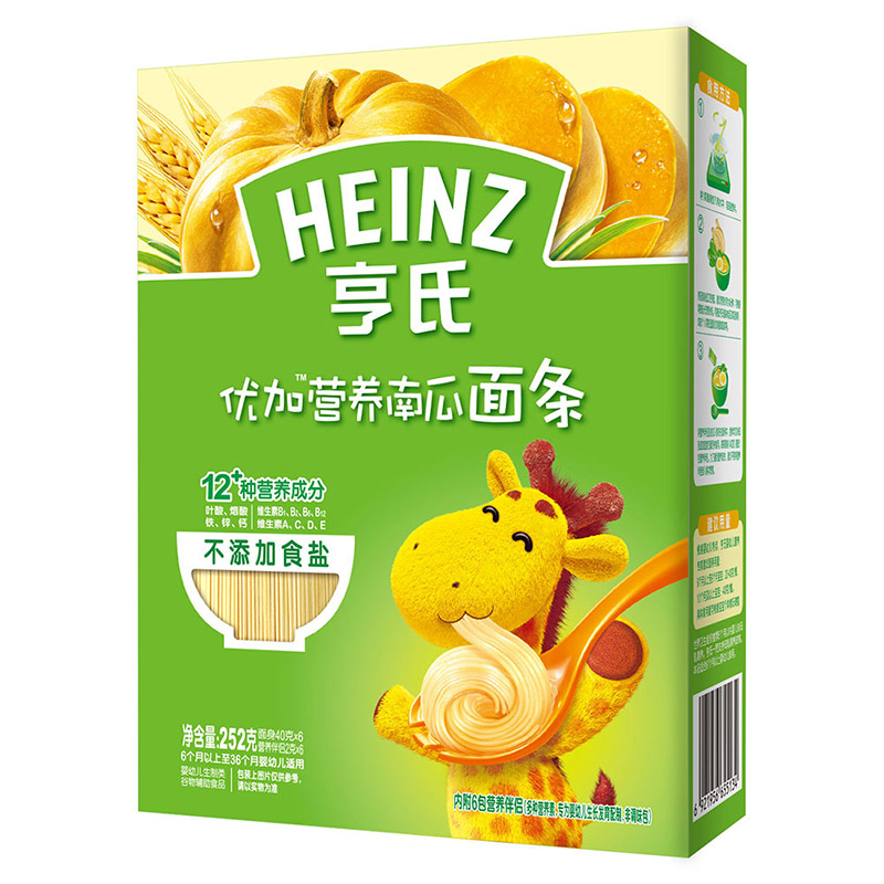 亨氏 (Heinz) 1段 嬰幼兒輔食 優(yōu)加寶寶面條 含南瓜 寶寶營(yíng)養(yǎng)面條252g(無(wú)鹽)(輔食添加初期-36個(gè)月適用)