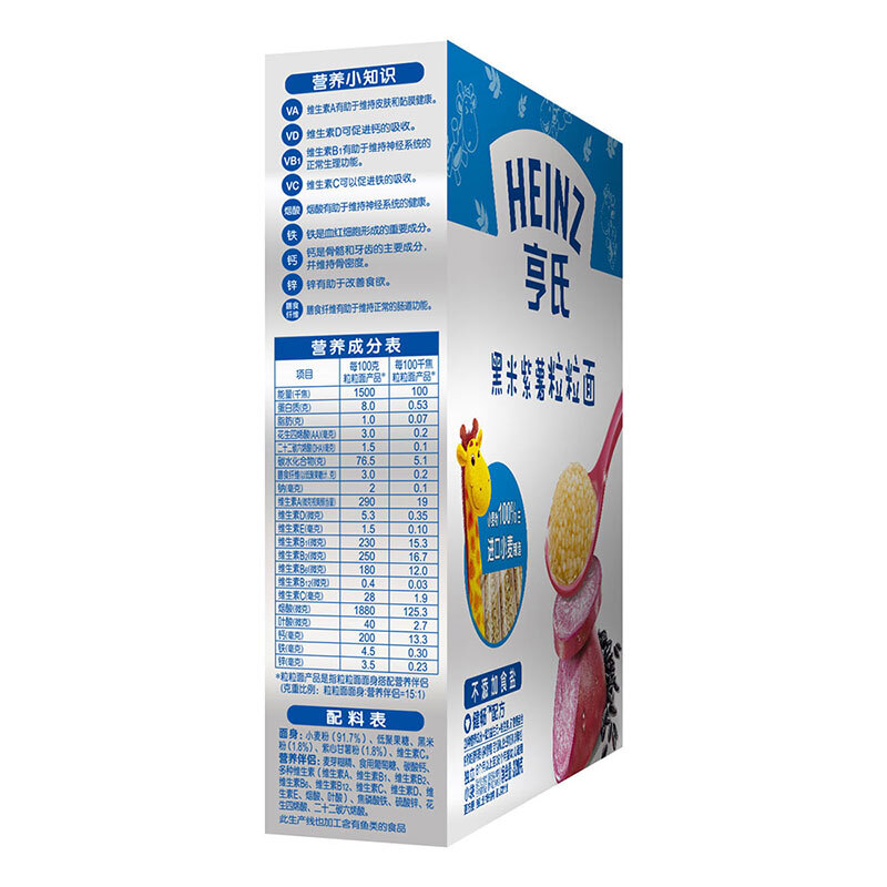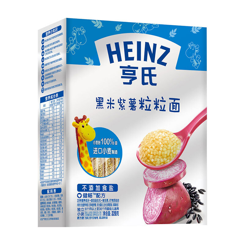 亨氏 (Heinz) 2段嬰幼兒輔食 金裝粒粒面 含黑米紫薯 寶寶營養(yǎng)顆粒面320g(無鹽)(輔食添加初期-36個月適用)