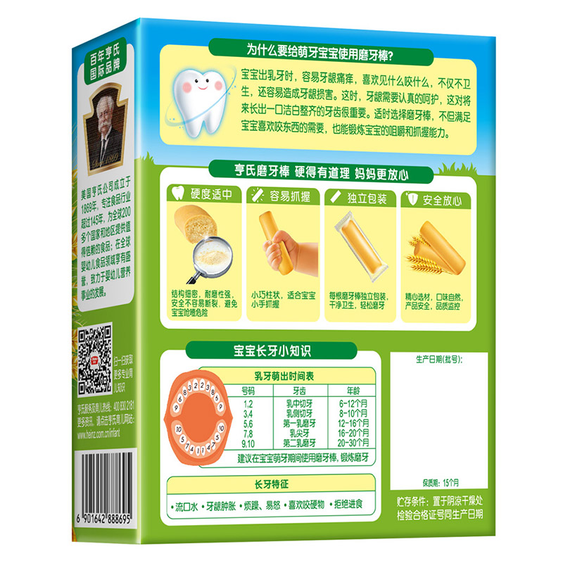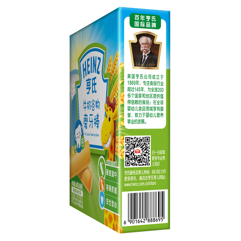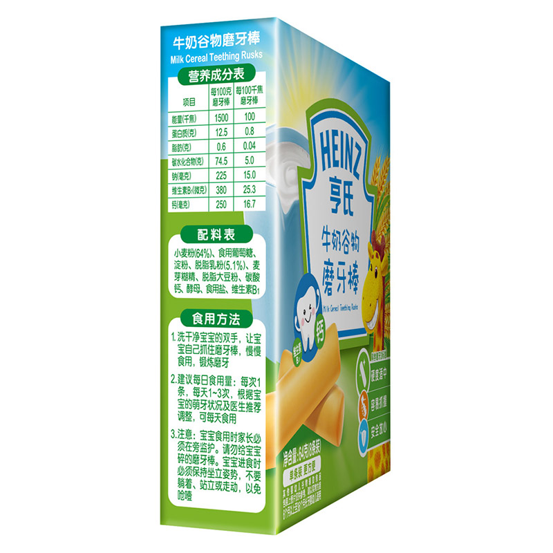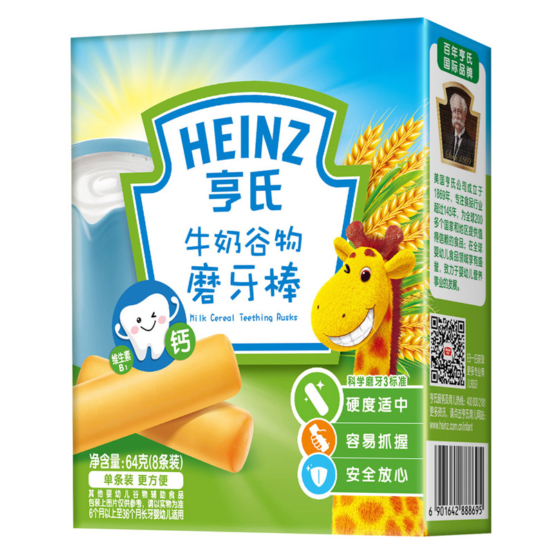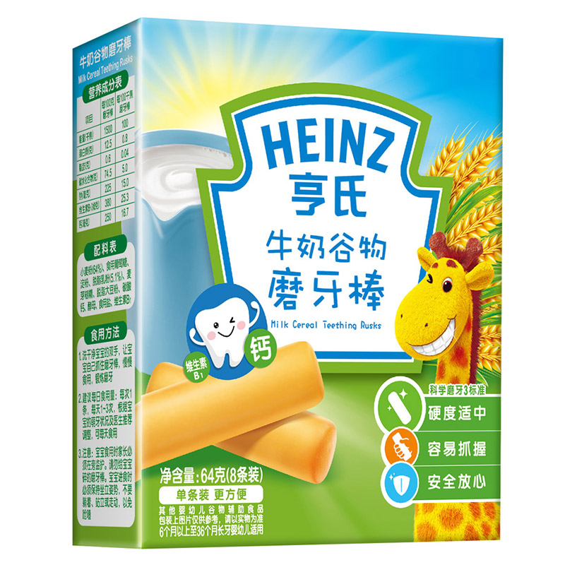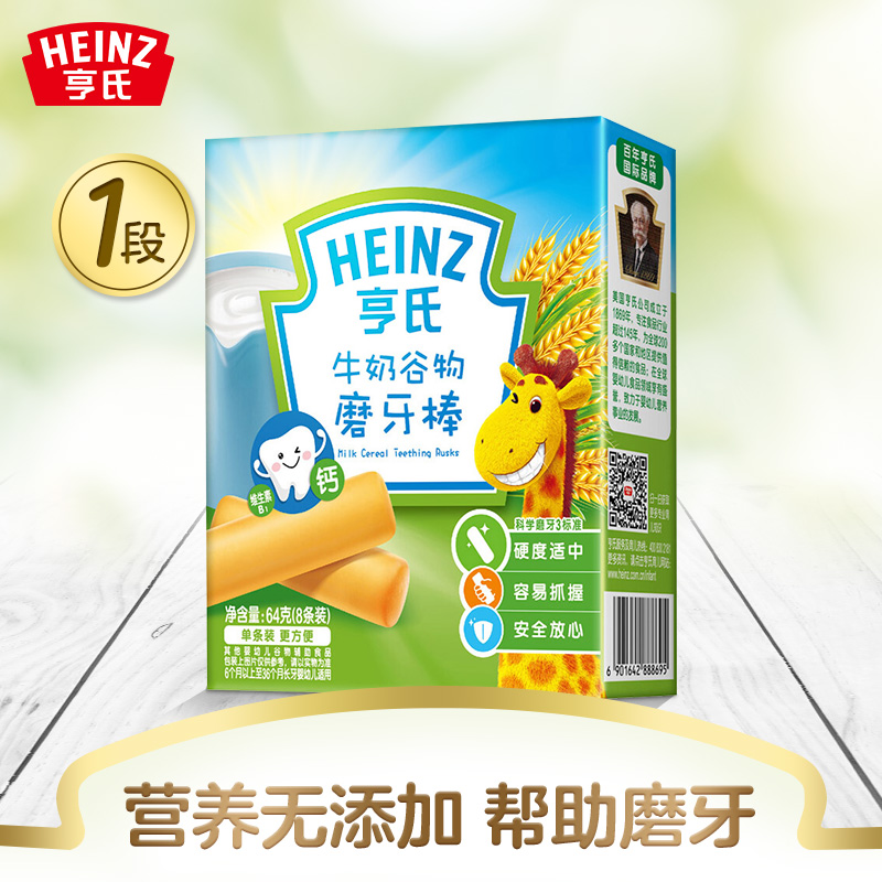 亨氏 (Heinz) 1段 嬰幼兒輔食 牛奶 寶寶零食磨牙棒64g(輔食添加初期-36個(gè)月適用)