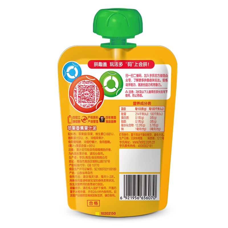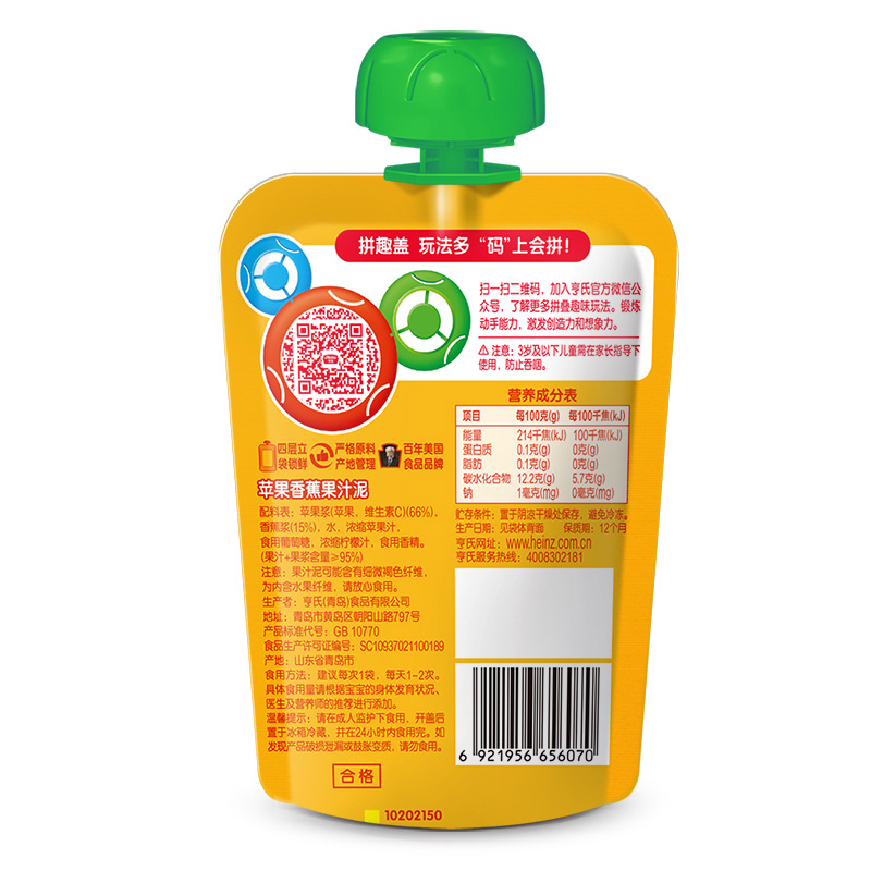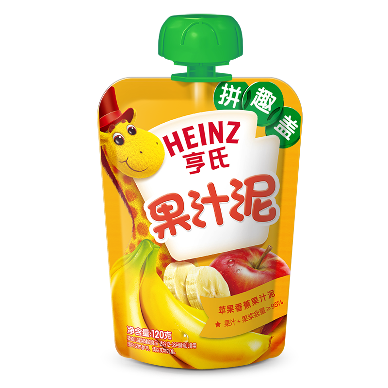 亨氏(Heinz)果汁泥 嬰兒水果泥寶寶輔食泥零食(1-3歲適用) 香蕉蘋果120g