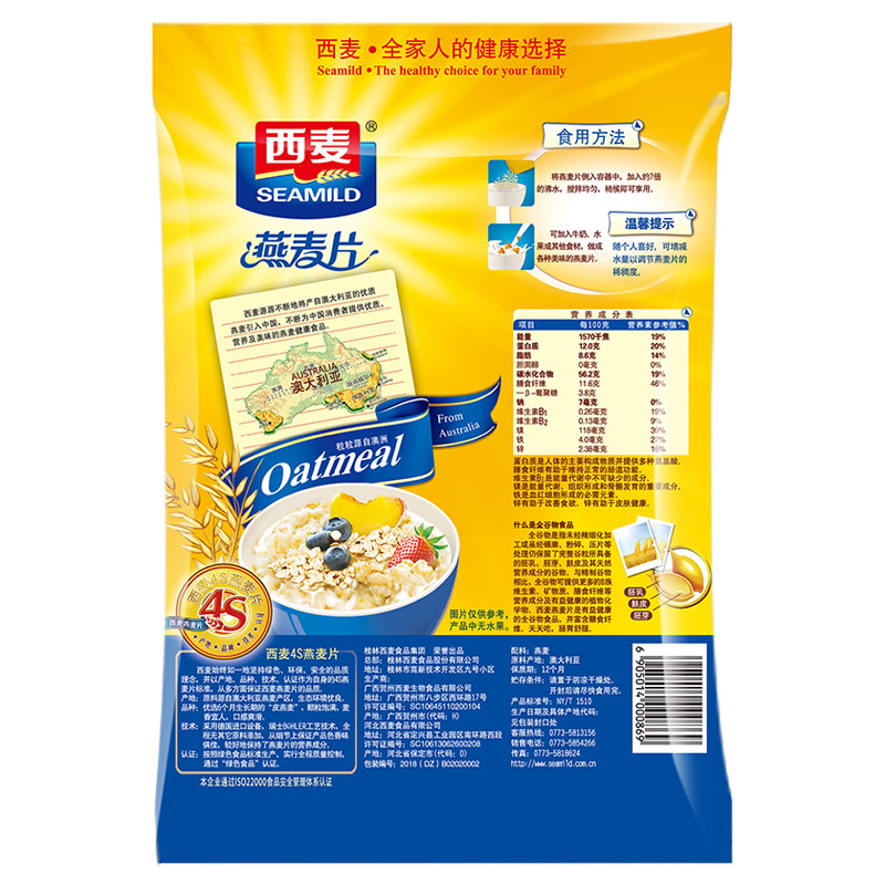 西麥 燕麥片 無添加蔗糖 營養(yǎng)早餐食品牛奶好搭檔 即食 谷物代餐麥片380g