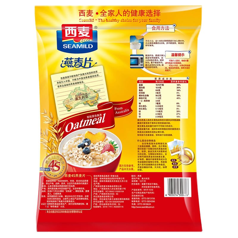 西麥 燕麥片 無添加蔗糖 營養(yǎng)早餐食品牛奶好搭檔 快熟 超值谷物代餐麥片1000g袋裝