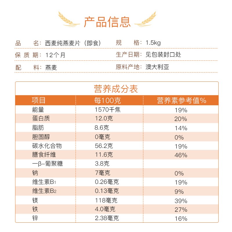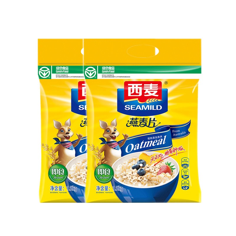 西麥 燕麥片 無添加蔗糖 營養(yǎng)早餐食品牛奶好搭檔 即食 超值谷物代餐麥片1500g袋裝