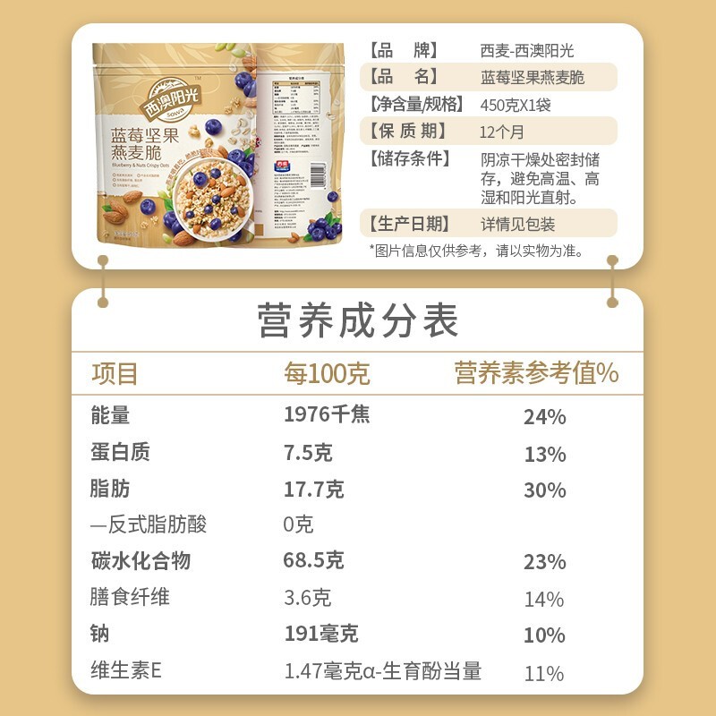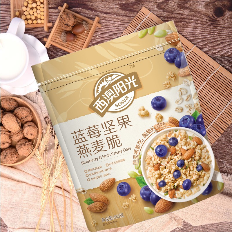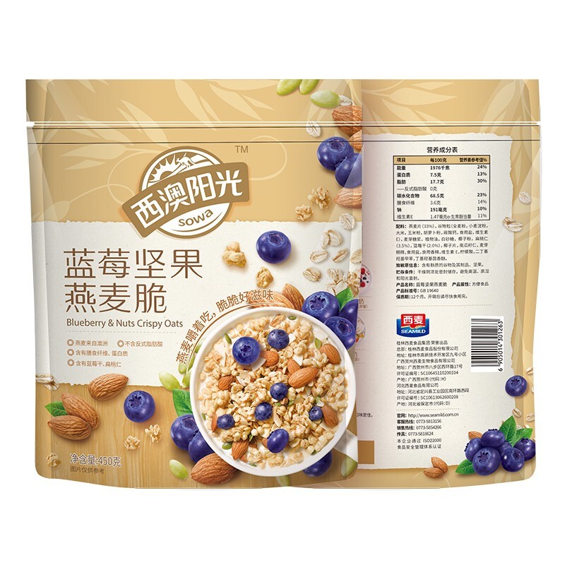 西麥西澳陽光藍(lán)莓堅(jiān)果燕麥脆450g袋 即食干吃冷泡早餐谷物燕麥片代餐 藍(lán)莓堅(jiān)果燕麥脆450g